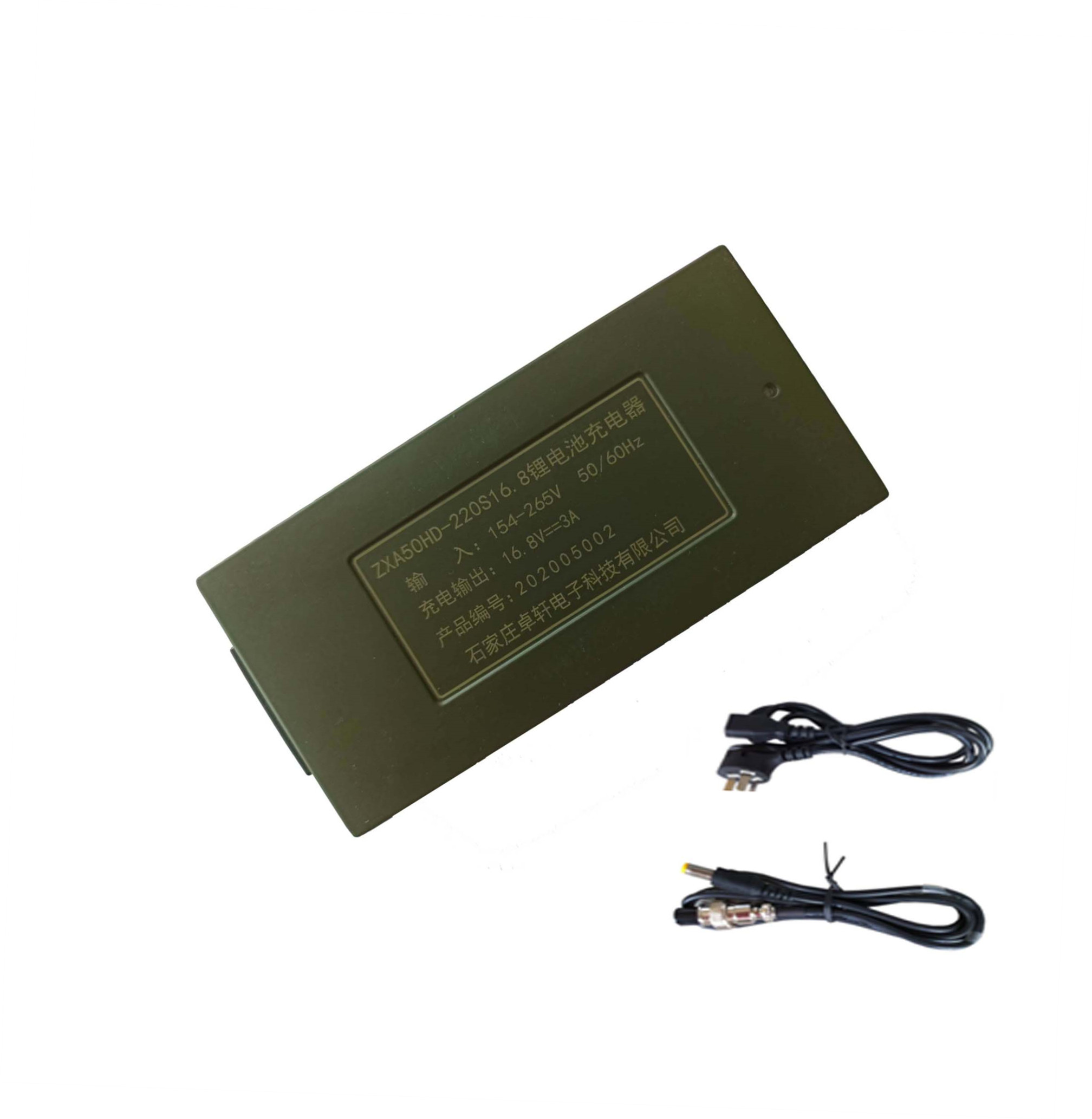 ZA50-CDQ型軍品級4串鋰電池充電器,采用AC輸入方式,充電電壓16.8V,充電電流3A。其外殼為鋁合金材料,全密封。