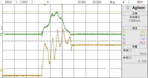 目前測試了一下,電流達(dá)到350A,瞬間30us左右,如果前面是IGBT開關(guān)用,擔(dān)心損壞