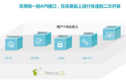 該系列產(chǎn)品基于ZLG 致遠電子AWorks 平臺軟件架構(gòu)設計,內(nèi)部集成了穩(wěn)定的無線通信協(xié)議,并且全系列產(chǎn)品采用統(tǒng)一的API 接口,用戶可以針對自己的應用,在該基礎上進行快速的二次開發(fā),無論使用Wi-Fi、GPRS 還是以后的LoRa、NB-IoT 產(chǎn)品,用戶只需實現(xiàn)一套應用即可適用于該系列的所有產(chǎn)品。