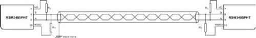 如圖所示,在實際應用中,RS-485通信線可以使用屏蔽雙絞線,并且屏蔽層單點接大地,可以有效抑制電快速脈沖群騷擾耦合到通信線上。