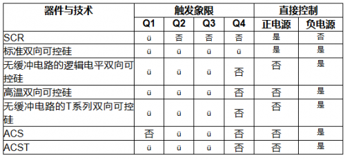 雙向控硅、ACS和ACST可以在每個(gè)象限或只在部分象限被激活,具體情況視開關(guān)所采用的半導(dǎo)體技術(shù)。