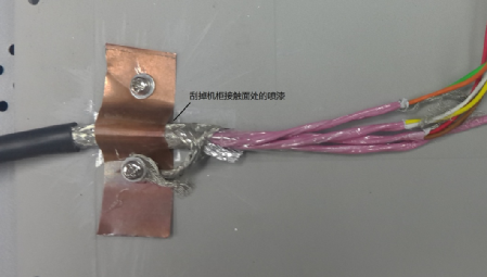從安全方面考慮,三個機(jī)柜都必須接大地,強(qiáng)電線路與信號線分開避免干擾這些都是要遵循的基本原則。實(shí)際機(jī)柜間位置較遠(yuǎn),接地對于高頻干擾改善不多,只作為安全措施。解決這種問題一般考慮是從干擾源、傳播路徑、敏感設(shè)備三方面著手。驅(qū)動器和功率分析儀是成型的設(shè)備,不便于改動,考慮從傳播路徑入手,使用多芯屏蔽電纜連接扭矩傳感器到測控柜,傳感器端屏蔽層連接到傳感器外殼,也與電機(jī)平臺連通,另一側(cè)屏蔽層接到測控柜機(jī)殼。最初的時(shí)候屏蔽層通過一根較長的線連接到測控柜,發(fā)現(xiàn)并沒有改善,最后使用銅片將整根線壓到機(jī)柜,干擾得到很大衰減。