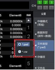 第四,文件類型中有“PAD”和“CSV”兩種格式,其中“PAD”格式文件需要通過PAM上位機軟件打開才能分析,“CSV”格式文件可以直接用Excel打開。此外“PAD”格式的文件也可以在機器本地進行回讀分析;