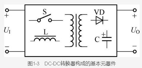DC-DC轉(zhuǎn)換器是開(kāi)關(guān)電源中最常見(jiàn)的一種,由二極管,三極管,電容器等構(gòu)成。DC-DC轉(zhuǎn)換器就是重復(fù)通斷開(kāi)關(guān),把直流電壓或電流轉(zhuǎn)換成高頻方波電壓或電流,再經(jīng)整流平滑變?yōu)橹绷麟妷狠敵?。DC-DC轉(zhuǎn)換器室友半導(dǎo)體開(kāi)關(guān)、整流二極管、平滑濾波電抗器和電容等基本元件組成。當(dāng)輸入、輸出間需要進(jìn)行電氣隔離時(shí),可以采用變壓器,把高頻方波電壓通過(guò)變壓器傳送到輸出側(cè)。構(gòu)成DC-DC轉(zhuǎn)換器的基本元器件如下圖1所示。圖中UI為整流后不穩(wěn)定的直流電壓;UO為經(jīng)過(guò)斬波的輸出電壓;S為開(kāi)關(guān)。