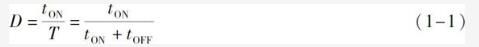 式中,T為開(kāi)關(guān),S通斷周期;tON為開(kāi)關(guān)S導(dǎo)通時(shí)間;TOFF為開(kāi)關(guān)S截止時(shí)間。