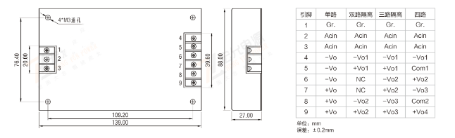 典型性能:金屬殼、寬壓輸入、單、雙、三路輸出,輸出低紋波噪聲、高穩(wěn)壓精度、長期短路保護(hù)自恢復(fù)、過溫保護(hù)、過流保護(hù)、過壓保護(hù)、使用效率高,高隔離耐壓。