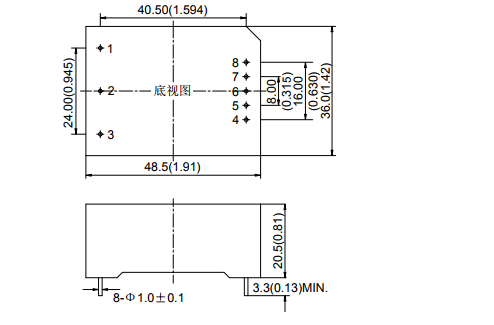 安裝尺寸(單位:mm)及管腳定義: | ||||||||||||